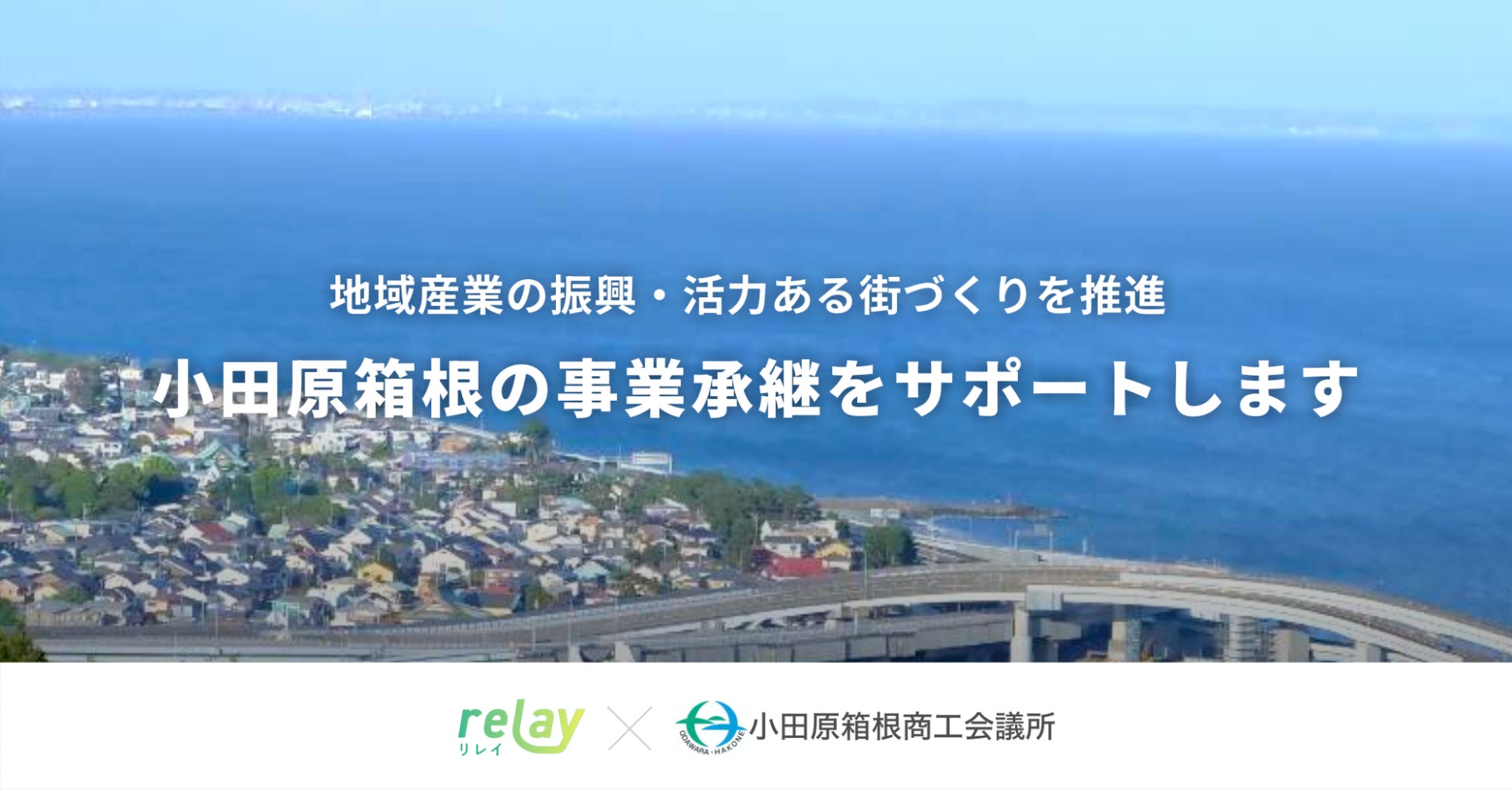 このたびの提携では、事業承継マッチングプラットフォーム「relay」の運営によって事業承継に関する蓄積されたノウハウとナレッジを活用し、小田原・箱根エリアの第三者事業承継の推進に向けて、共に取り組んでまいります。