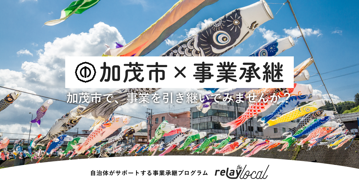 これに対して加茂市とrelayは、移住・定住を伴う第三者事業承継の推進に向けて、加茂市と共に取り組んでまいります。提携の第一弾として、加茂市に特化した後継者募集案件を掲載した「relay the local 加茂市」を開設しました。今後、加茂市に相談が寄せられる後継者不在事業者の情報をrelayに提供いただき、「relay the local 加茂市」への掲載を行います。