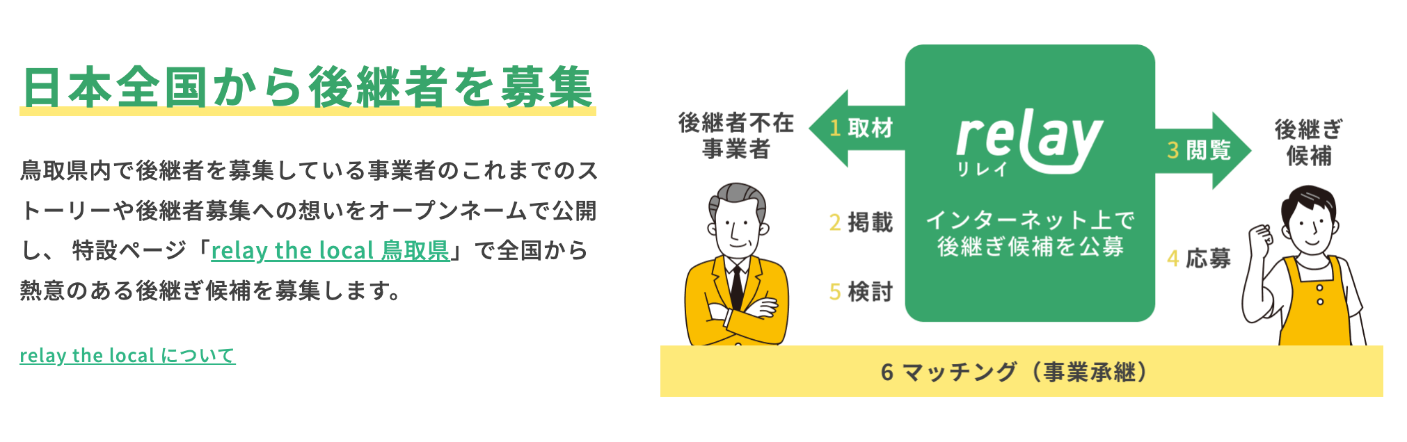 後継者不在事業者の詳細はこちら:https://relay.town/local/tottori