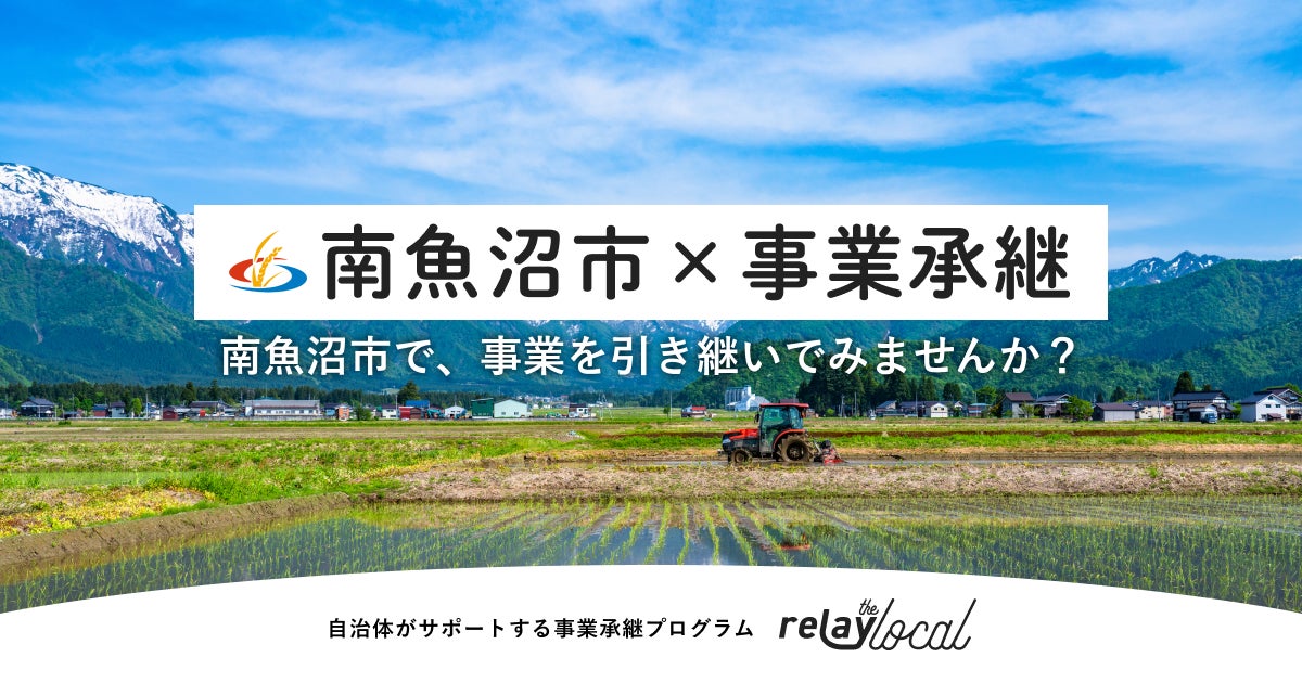 このたび南魚沼市とrelayは、移住・定住を伴う第三者事業承継の推進に向けて、共に取り組んでまいります。提携の第一弾として、南魚沼市に特化した後継者募集案件を掲載した「relay the local 南魚沼市」を開設しました。今後、南魚沼市に相談が寄せられる後継者不在事業者の情報をrelayに提供いただき、「relay the local 南魚沼市」への掲載を行います。