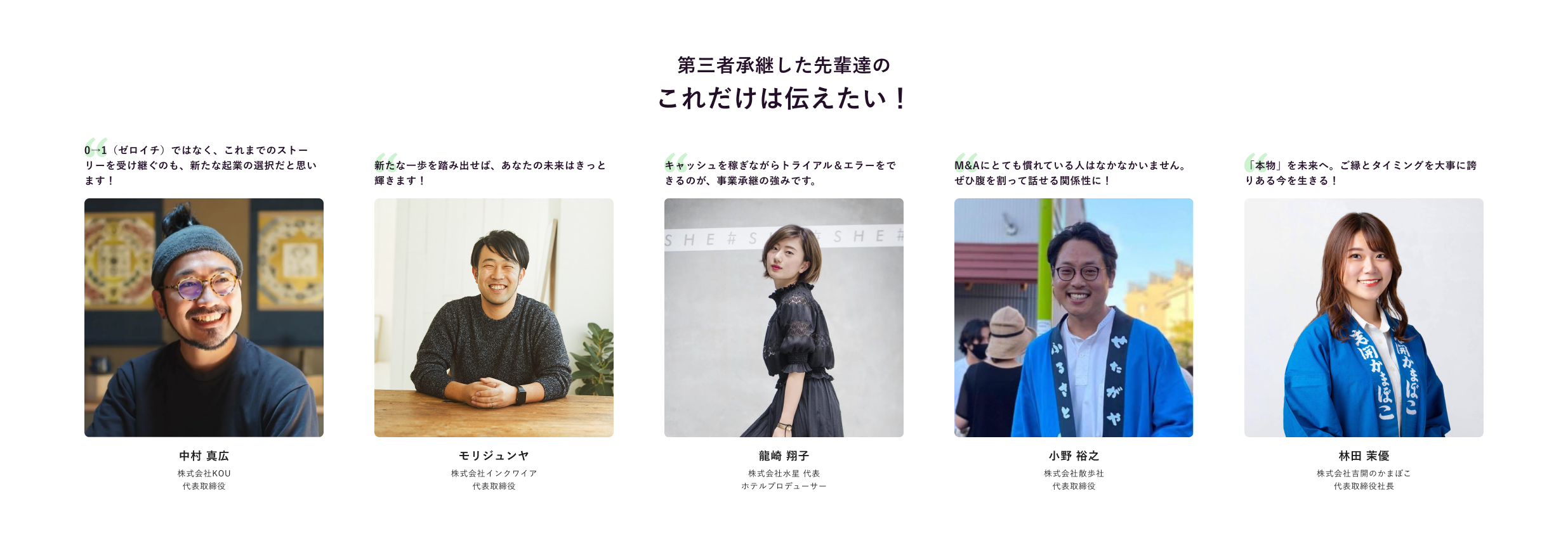 また、これにあわせて本日relays特設ページ内に第三者承継経験者からの応援コメントを追加公開しました。第三者承継を経験した先輩が考える、事業承継のメリットや魅力についてのコメントを掲載しています。