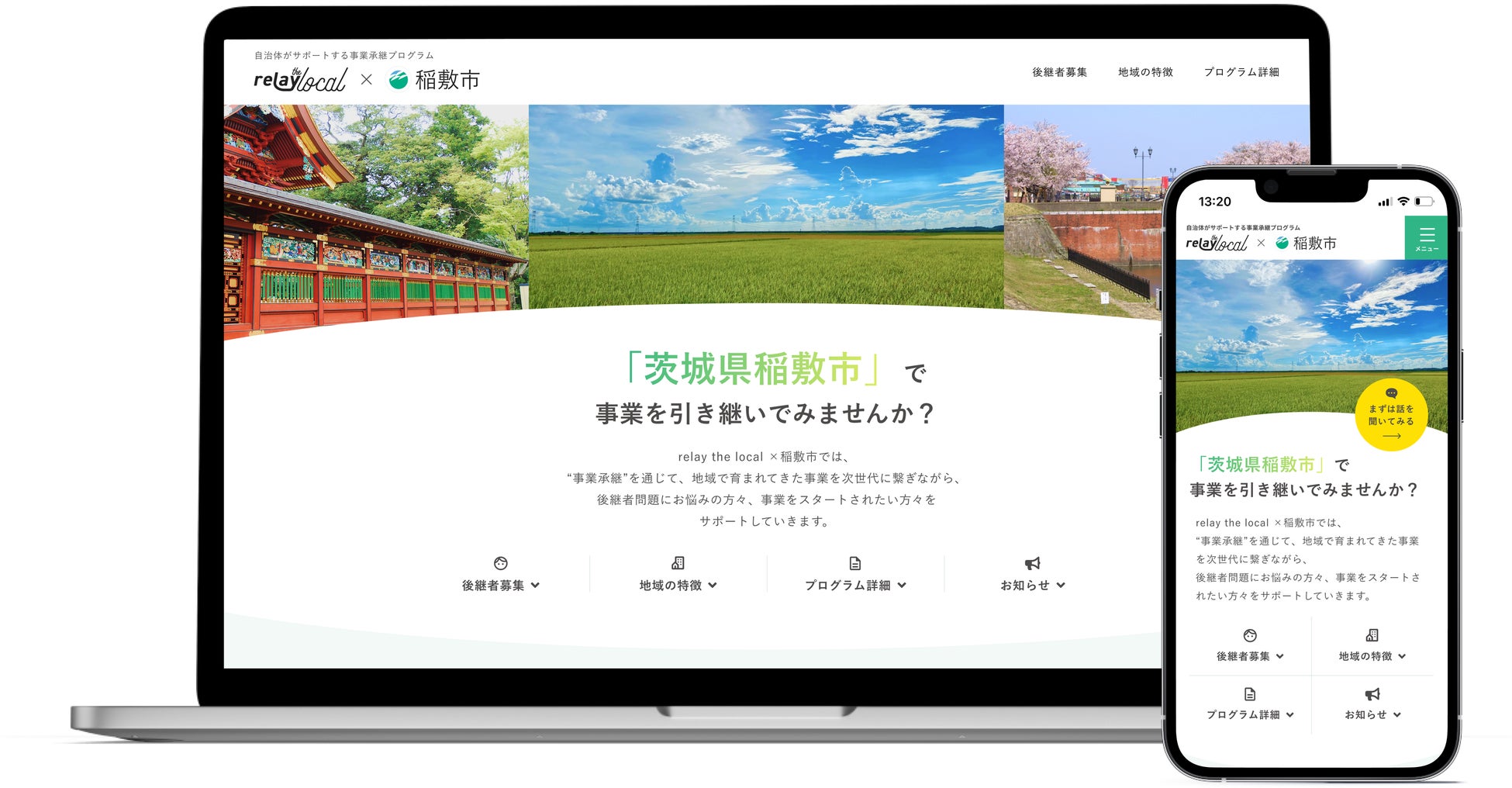 このたび稲敷市とrelayは、移住・定住を伴う第三者事業承継の推進に向けて、共に取り組んでまいります。提携の第一弾として、稲敷市に特化した後継者募集案件を掲載した「relay the local 稲敷市」を開設し、後継者募集案件を1件公開いたしました。