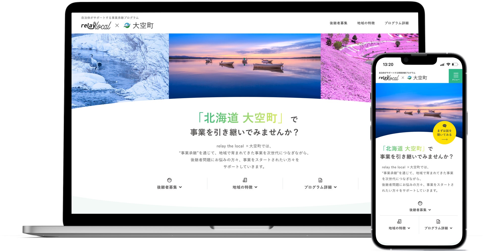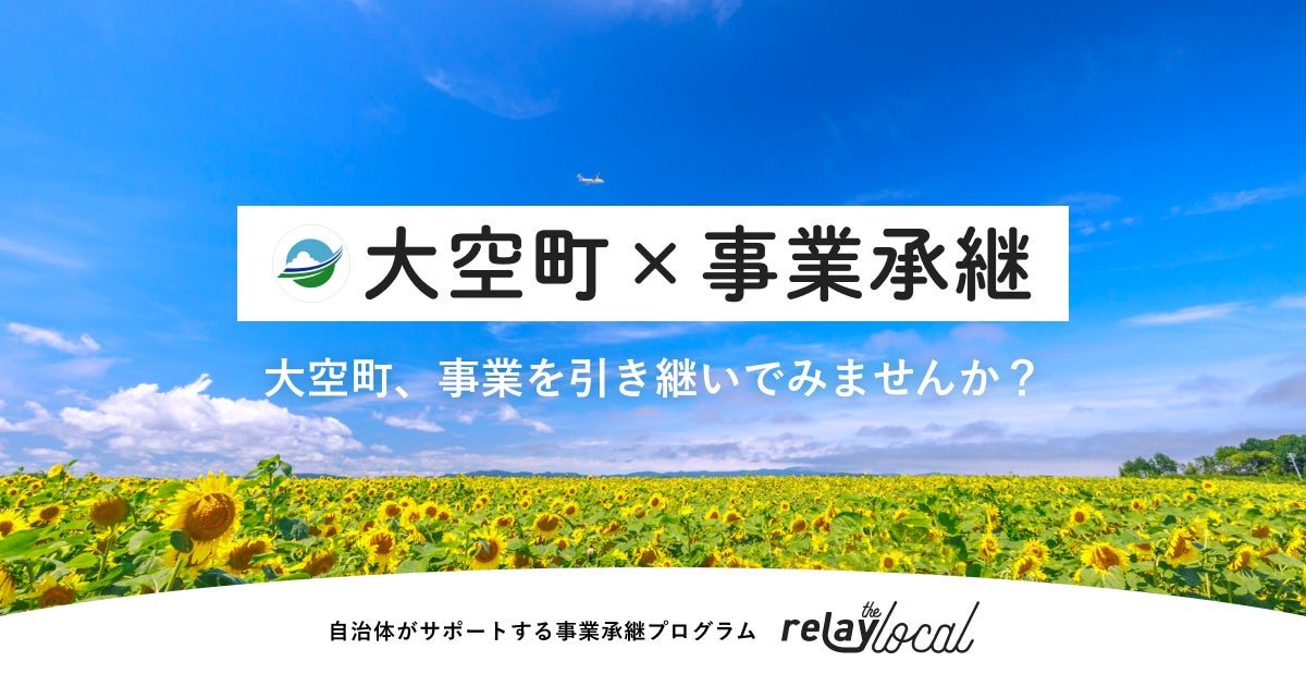 このたび大空町とrelayは、移住・定住を伴う第三者事業承継の推進に向けて、共に取り組んでまいります。提携の第一弾として、大空町に特化した後継者募集案件を掲載した「relay the local 大空町」を開設し、地域おこし協力隊としての採用を前提とした後継者募集案件を1件公開いたしました。