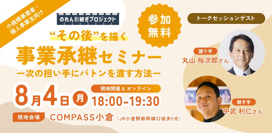 事業承継をお考えの皆様をはじめ、事業承継によって創業を考えている方や事業承継支援機関の方など、たくさんのご参加をお待ちしております!