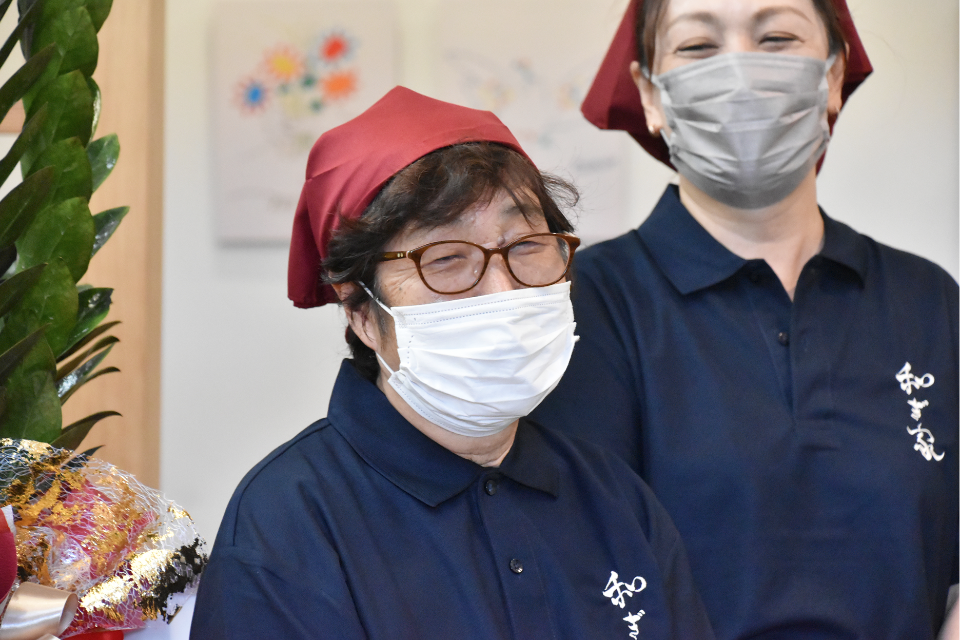 このたびのオープンにあたり、引継ぎセレモニーを開催いたしました。継ぎ手の南 直代さんと長門市の職員が出席し、多くのメディアも取材に訪れる中、花束贈呈や挨拶が行われ、和やかな雰囲気のなかで進められました。